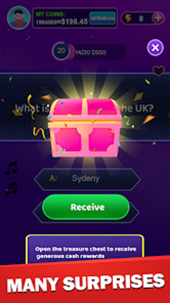 مع ماستر المعلومات، يمكن للمستخدمين الاستمتاع بميزات مثل الحصول السهل، مما يتيح لهم جمع العملات بسهولة من خلال الإجابة على الأسئلة. يوفر التطبيق أيضًا محتوى غنيًا من خلال تغطية قواعد المعرفة في مجالات متنوعة، مما يضمن للمستخدمين الوصول إلى مجموعة واسعة من المواضيع لاستكشافها.